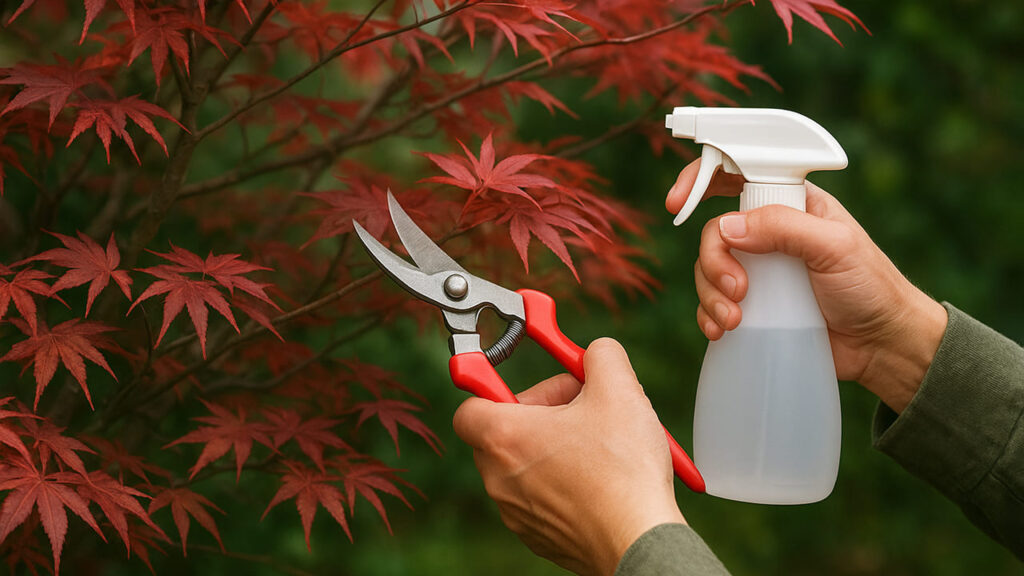 剪定後のもみじは、少なからずストレスを受けています。正しい管理を行うことで、健康的に回復し、美しい紅葉を見せてくれます。