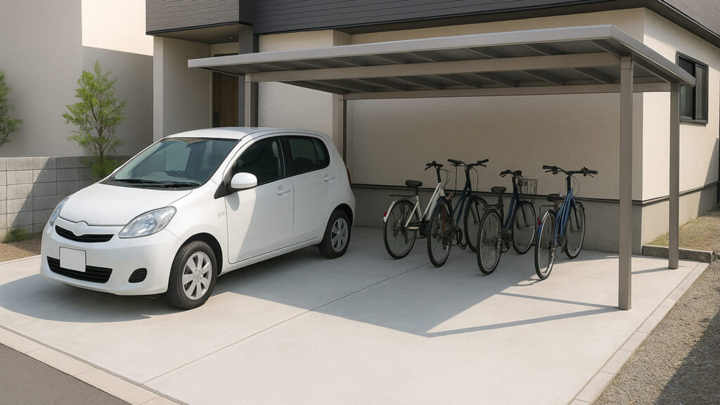 | 屋根なし(コンクリート土間のみ) | 約3〜10万円 | 駐輪スペースの舗装 |