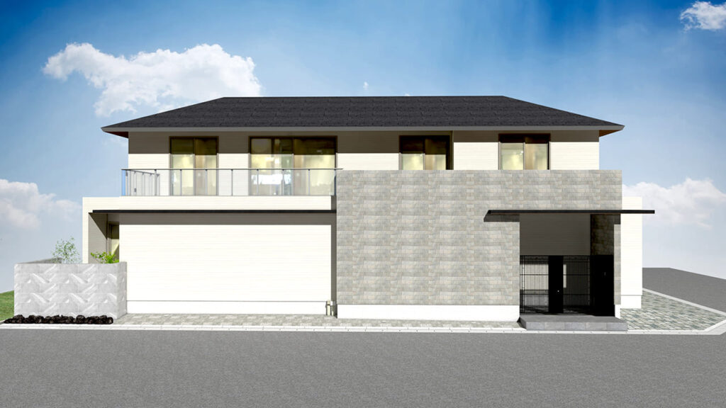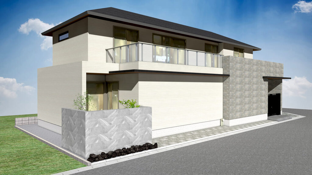 埼玉県春日部市の新築外構デザインです。弊社の施工事例を見て気に行って下さりお問い合わせ頂きました。