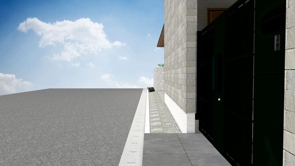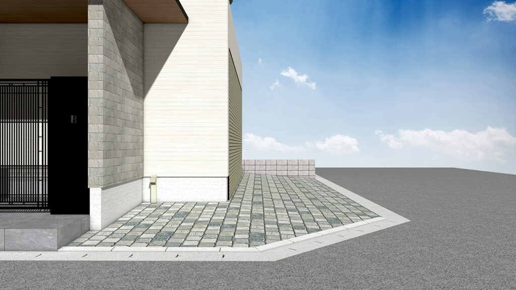 | アプローチ | ペイブ材:TOYO エクレル 300×600(クロムグレー)ゴRパーク |