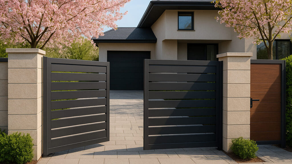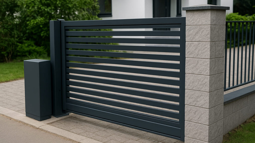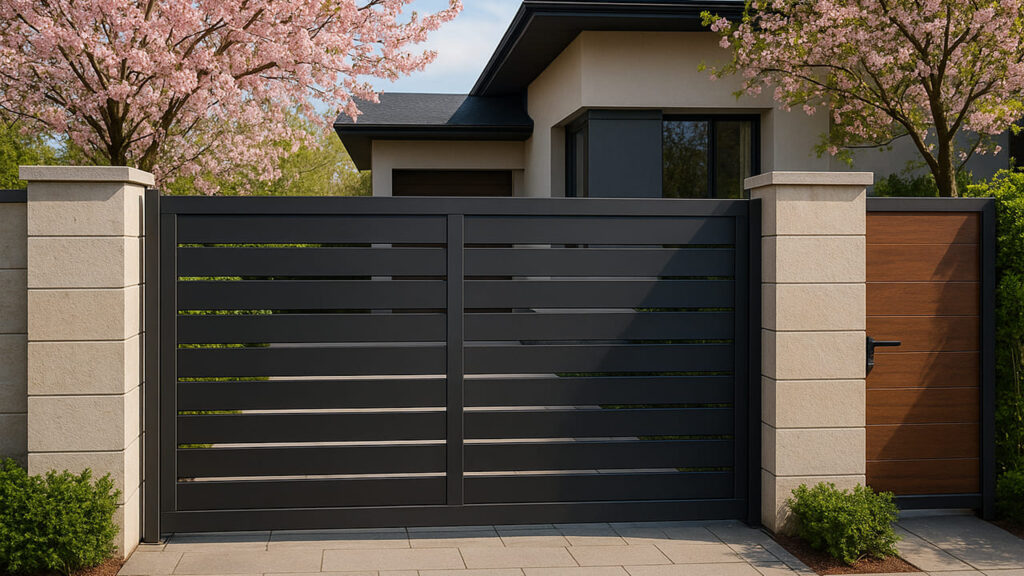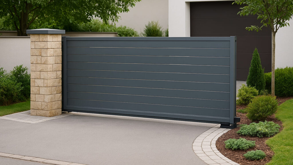 モダン住宅に調和するスライド式電動ゲート