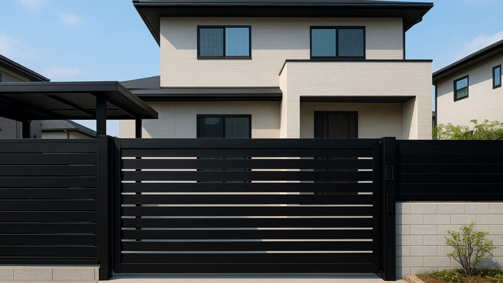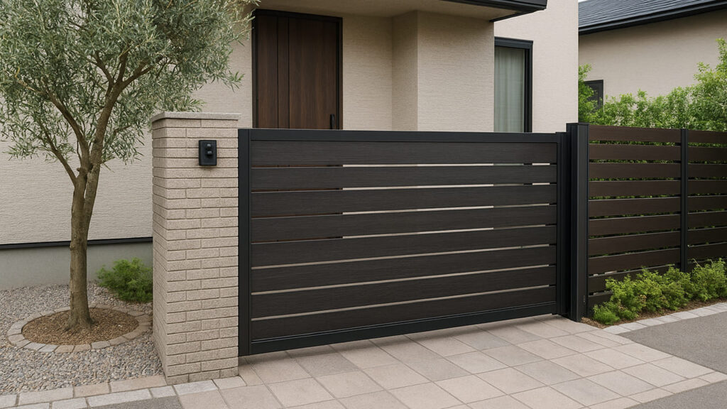ゲートだけが浮いてしまわないよう、フェンスや門柱、アプローチとの統一感を意識しましょう。木目調やブラックのアルミ素材など、建物の外観カラーに合わせた選定がおすすめです。