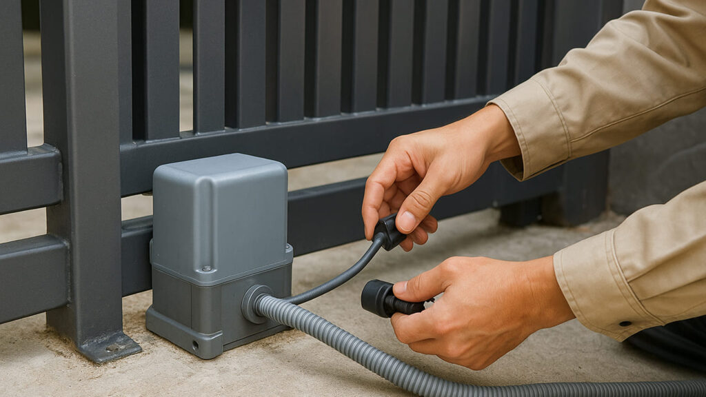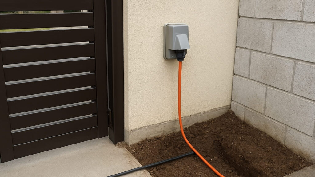 電動ゲートには電源が必要です。外構工事の段階で、電気配線のルートや防水コンセントの設置位置を計画しておきましょう。