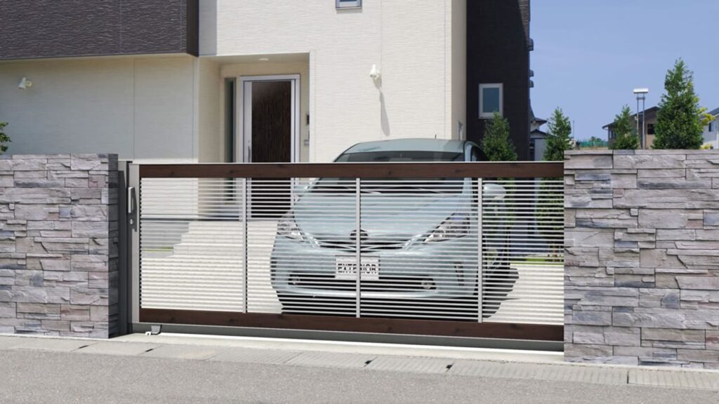 スライドレール上を横に動くタイプで、敷地の奥行きを活かしたい住宅に最適です。開閉がスムーズで、デザインの自由度が高いのが特徴です。特に外構デザインをシンプルかつモダンに仕上げたい方に人気があります。
