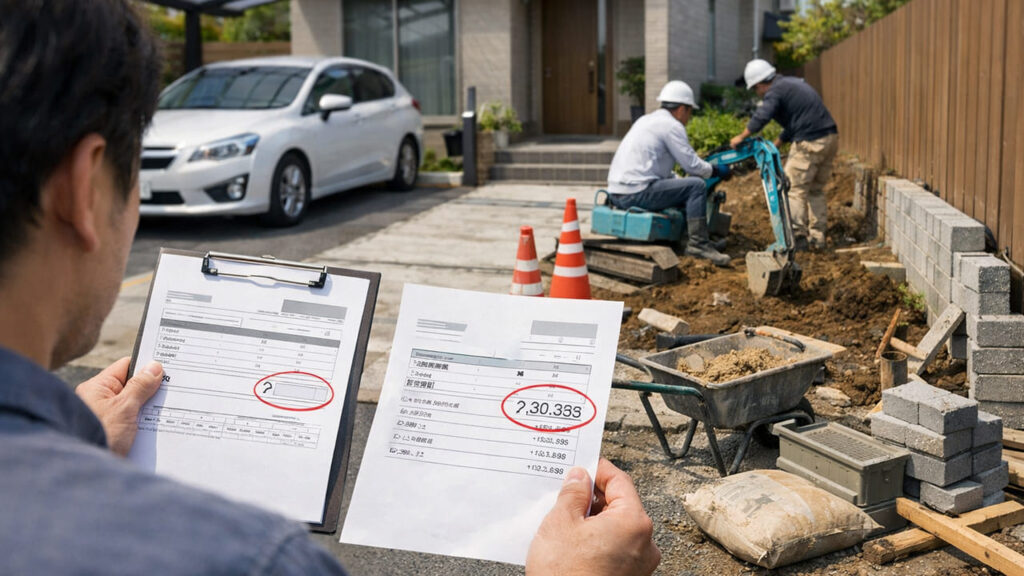 最初は安く見せて、後から追加工事で膨らむケースです。→ 事前に「総額」「含まれる範囲」を必ず確認しましょう。