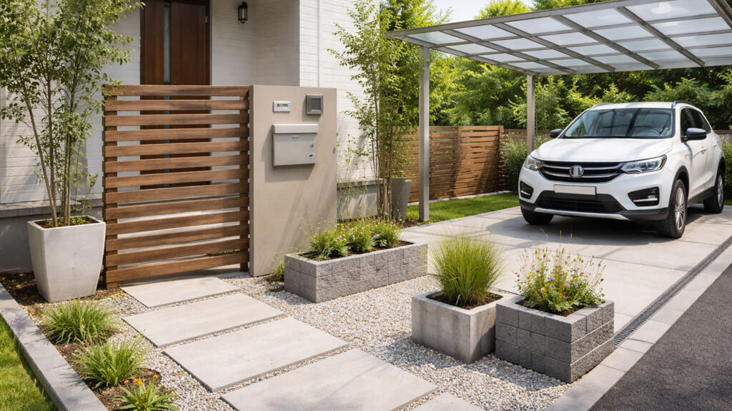 オープン外構とは、敷地と道路の間に門扉や塀を設けず、開放的に仕上げるスタイルです。都市部の狭小地や、駐車スペースを優先したい場合によく採用されます。