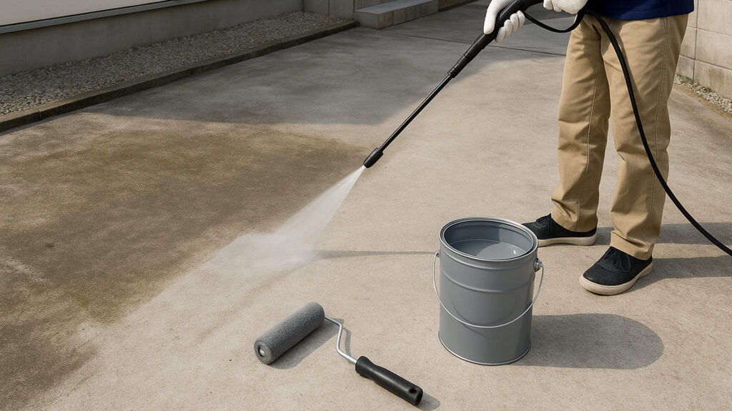 コンクリートは水分を吸いやすい素材のため、下地処理が非常に大切です。