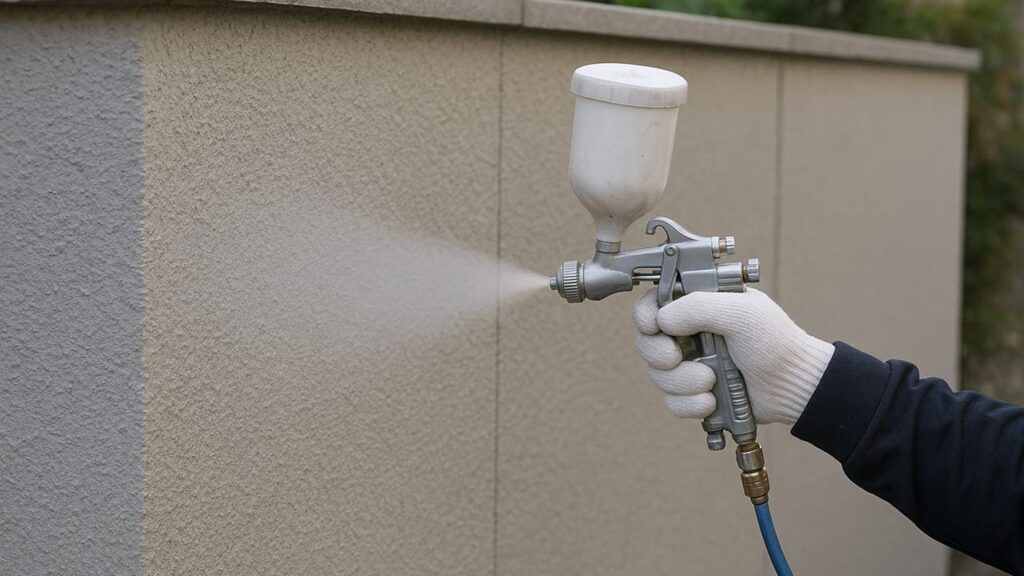 スプレーガンを使い、塗料を霧状にして吹き付ける方法。仕上がりが均一でムラがなく、美しい質感が出ます。門柱や塀のデザイン性を高めたい場合に最適です。