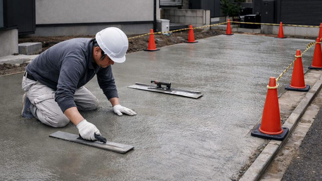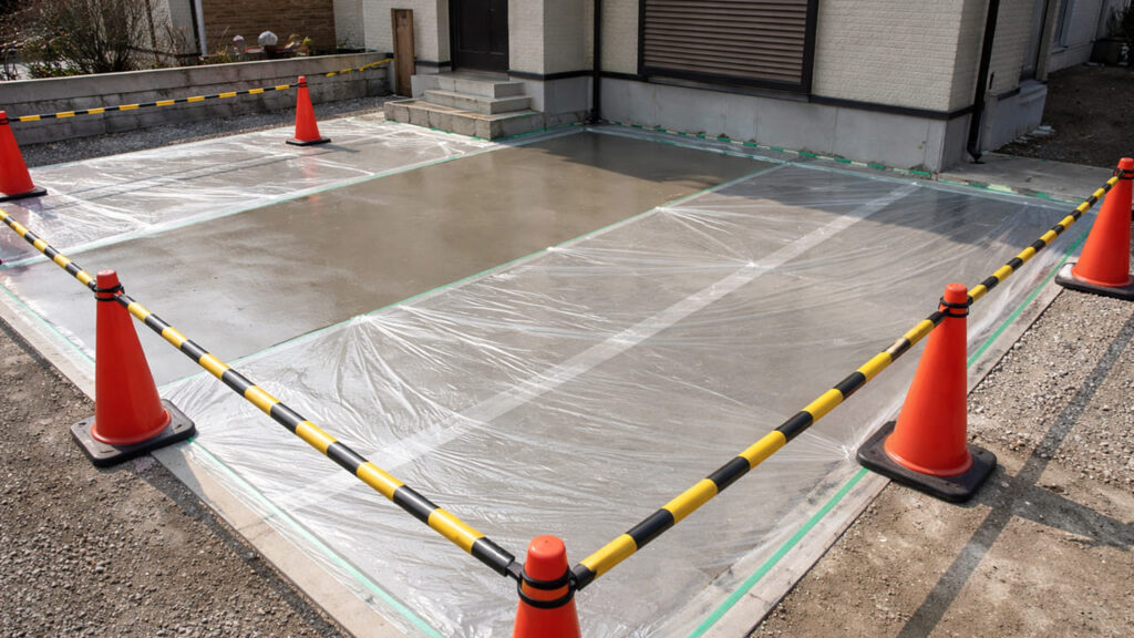打設後は一定期間立ち入り禁止とし、十分に乾燥させます。これを怠ると、強度不足や表面劣化の原因になります。