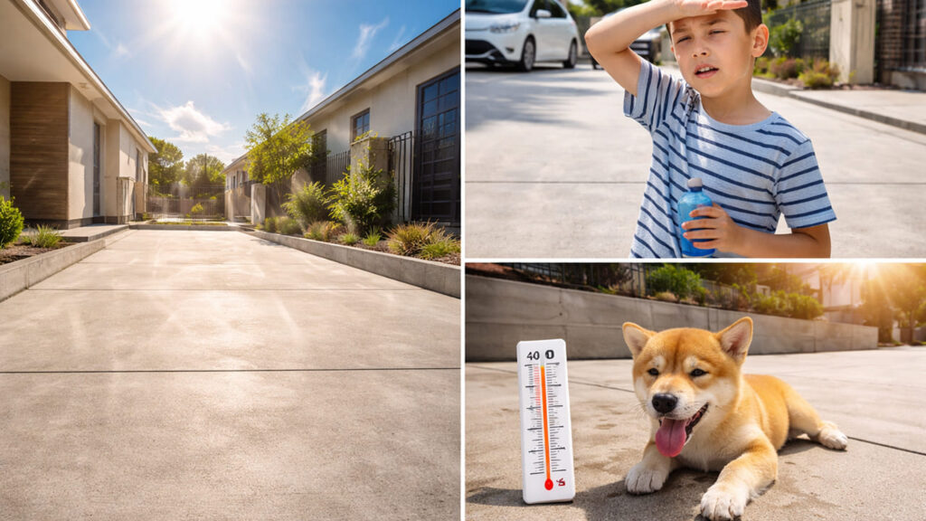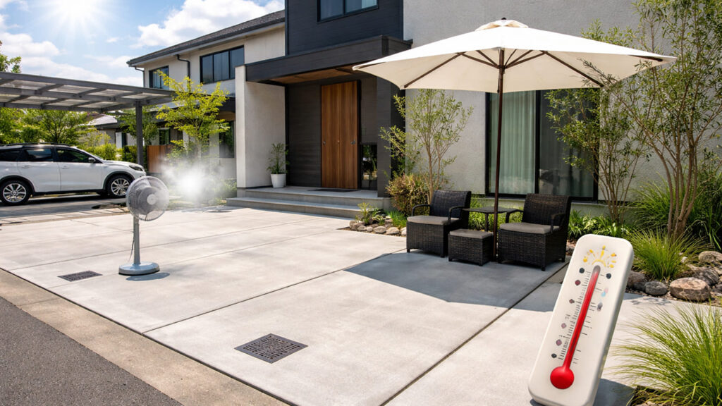 コンクリートは熱を吸収しやすく、夏場は照り返しが強くなります。そのため、外構 全面コンクリートにすると、庭や駐車場付近の体感温度が高くなりやすい点は注意が必要です。
