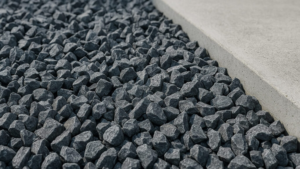 鋭角的な形をした砕石で、スタイリッシュな印象を与えます。駐車場の目地や建物の基礎まわりに使うと、全体のデザインが引き締まります。防犯砂利の代わりに敷くことで、見た目も機能性もアップします。
