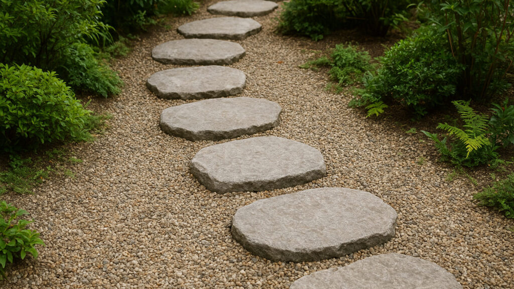 アプローチや庭の小道などに配置して使う敷石の一種です。歩くたびに「庭を歩いている感覚」を楽しめるのが魅力。素材には御影石や鉄平石などが人気です。