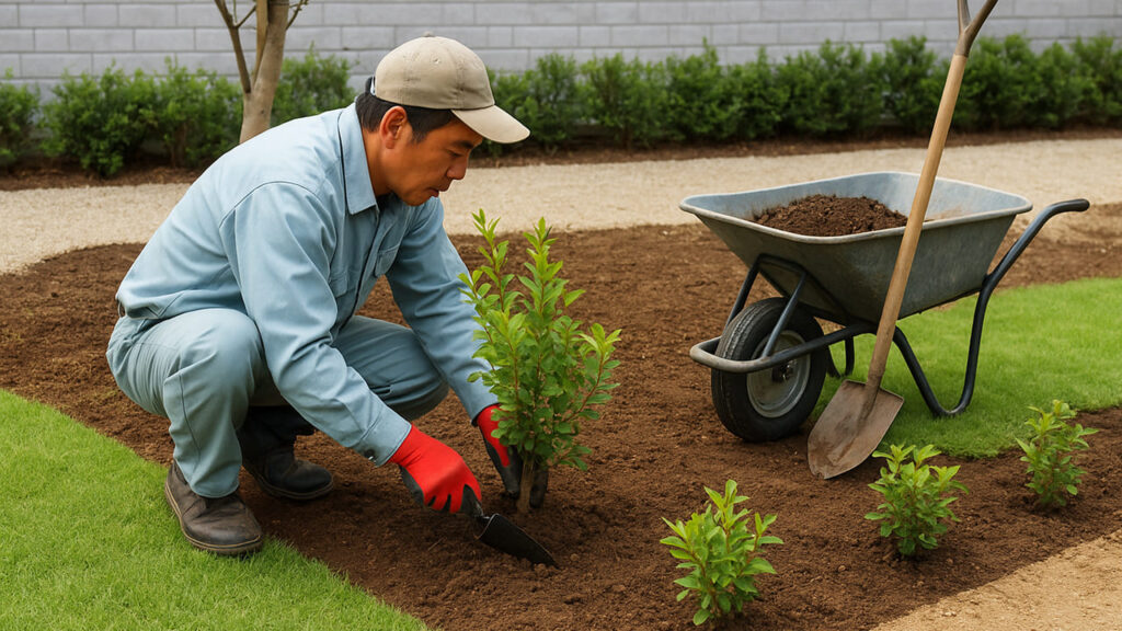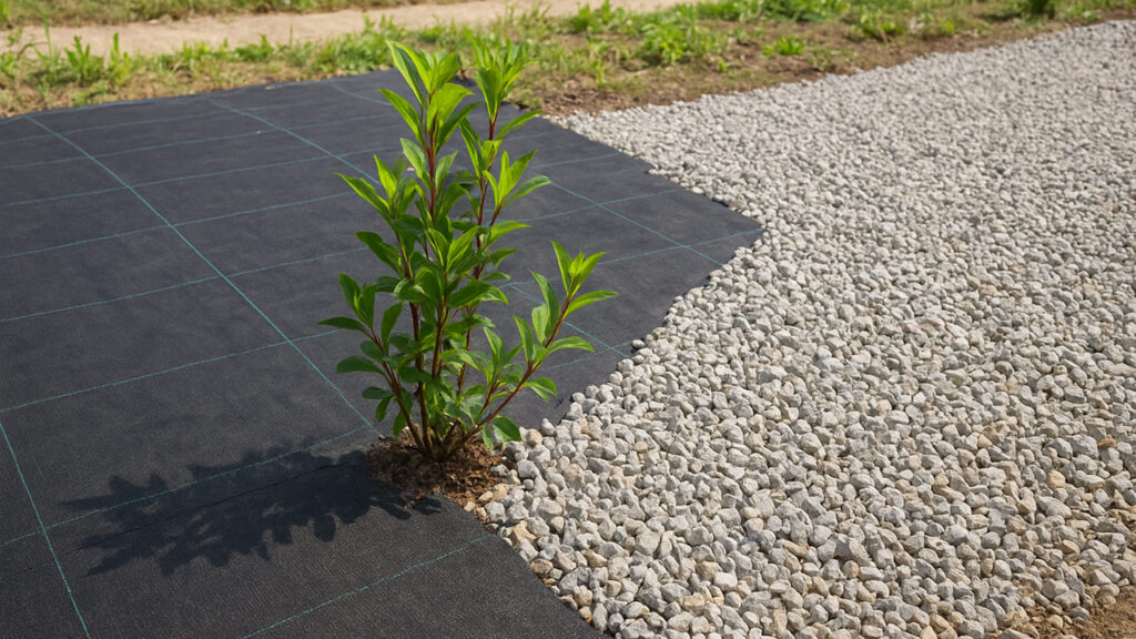 防草シートや砕石の施工を最初に行うことで、造園後の管理が楽になります。
