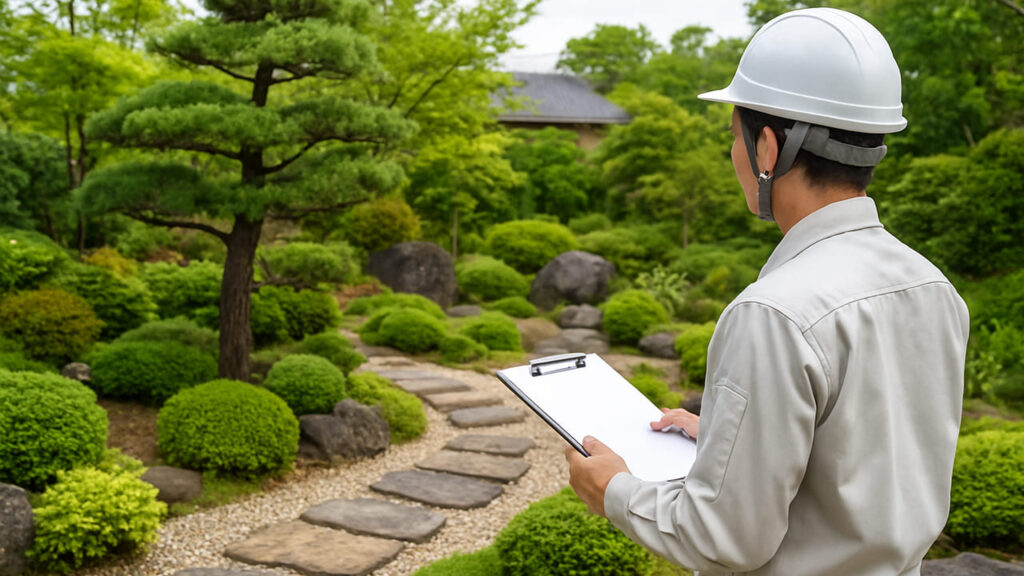 敷地の広さ、日当たり、風の通り道、土壌の状態、水はけを確認します。造園の仕上がりを左右する重要な工程です。