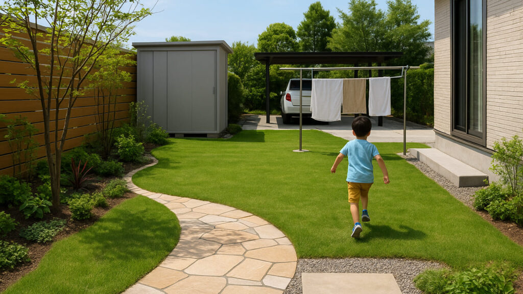 造園では見た目だけでなく、日常生活で使いやすい庭を設計します。洗濯動線、物置の配置、駐車場への移動、子どもの遊び場などを考慮し、無駄のない動線を確保できます。