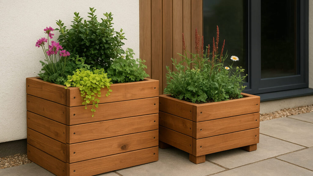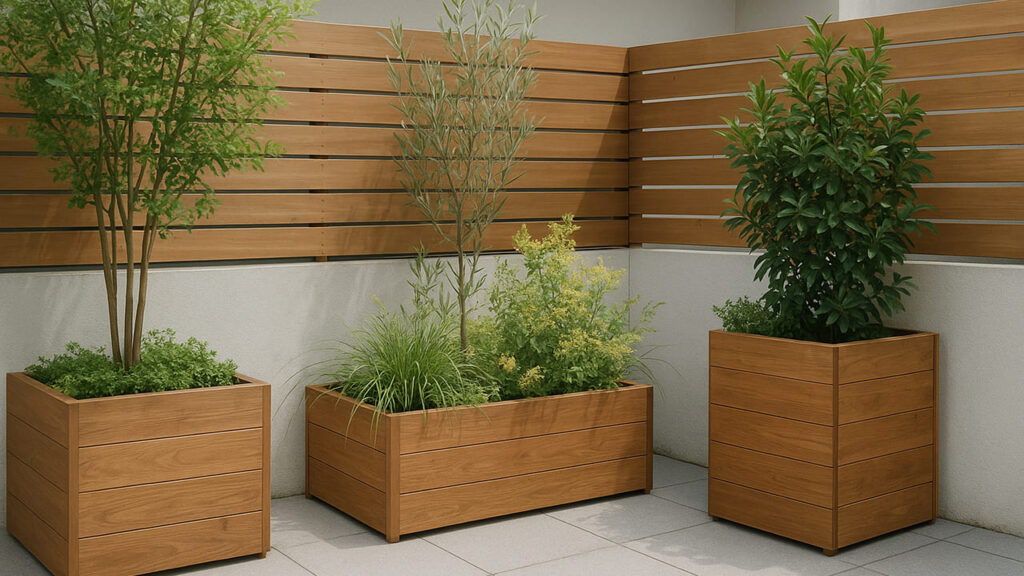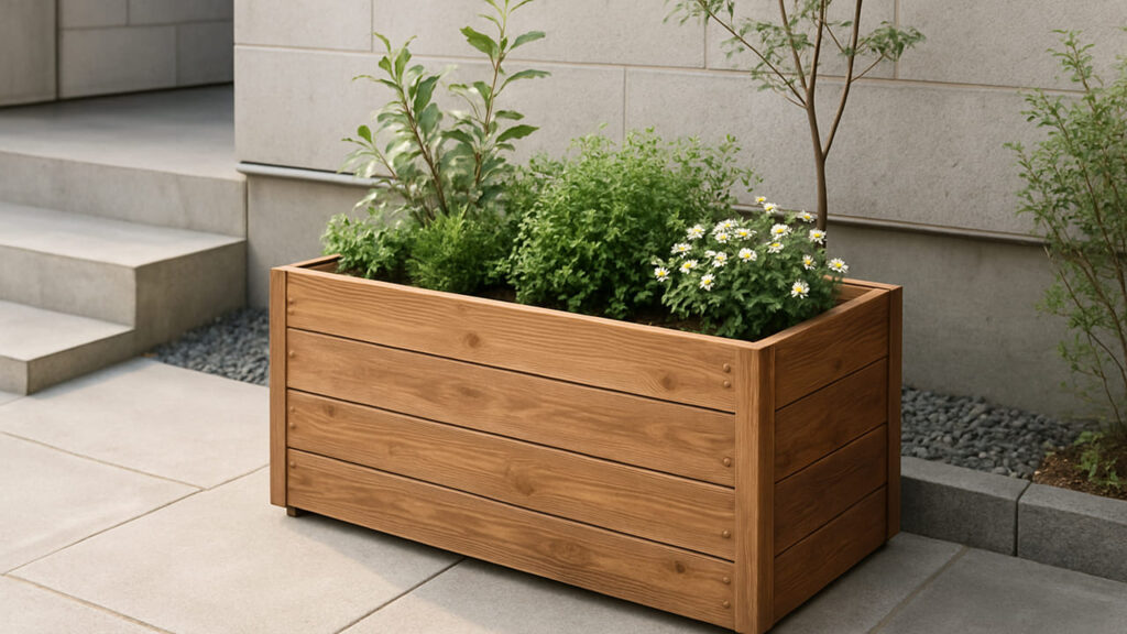 - 木製プランター:ナチュラルで温かみがあり、自然と調和