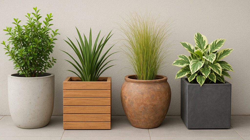 - FRP(樹脂)製プランター:軽量で扱いやすく、モダンな印象
