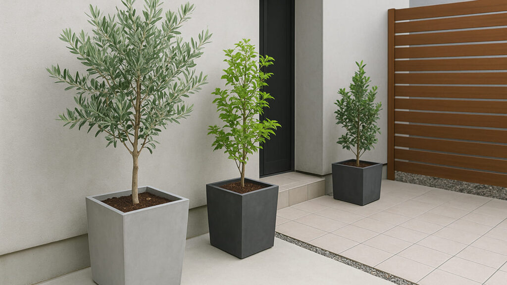 「外構 木 プランター」を活用すれば、シンボルツリーも自由に配置できます。オリーブやシマトネリコ、ソヨゴなどの中木を植えると、玄関まわりやテラスがぐっとおしゃれに。移動や模様替えも容易なため、ライフスタイルに合わせて楽しめます。