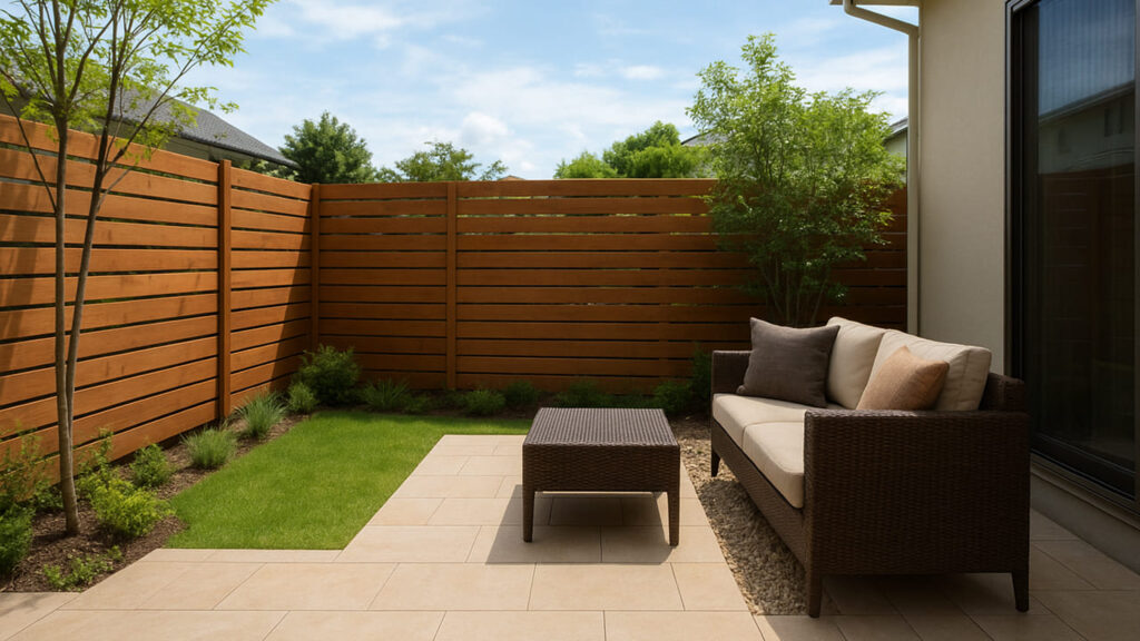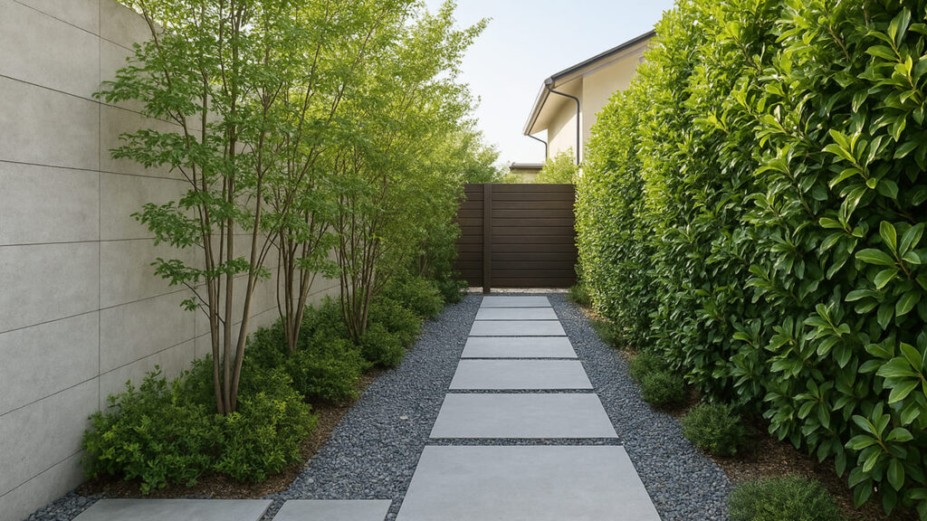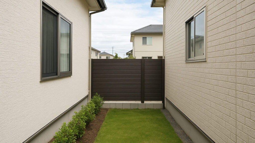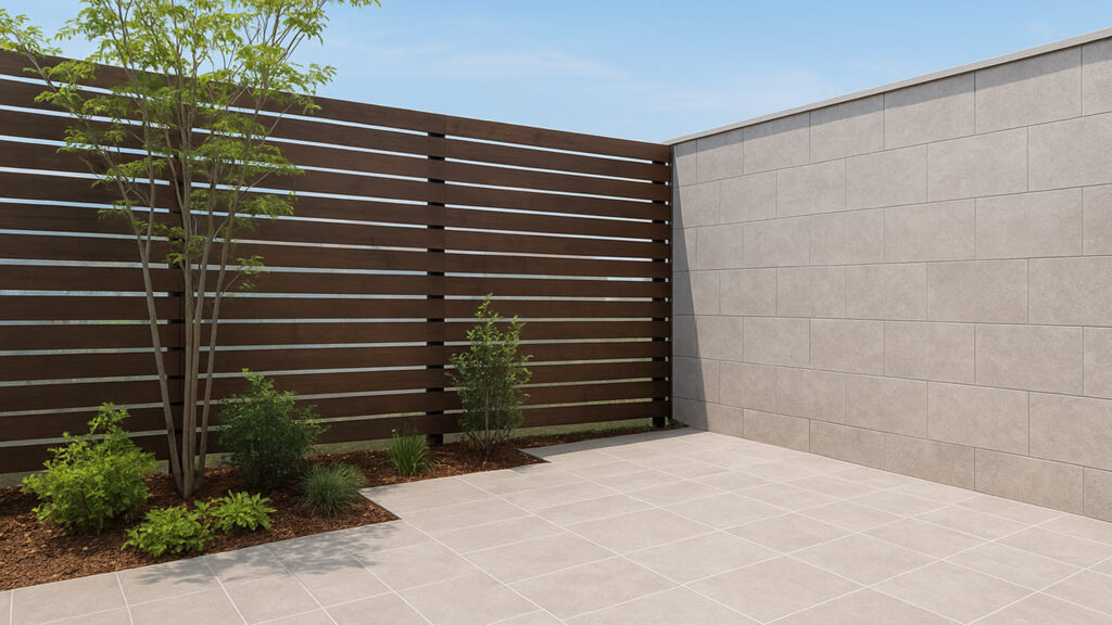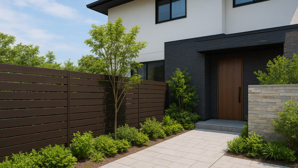 最も基本となるのが、フェンスや塀による目隠しです。ただし、高すぎる塀は圧迫感が出てしまうため、高さやデザインのバランスが重要です。素材も多様で、アルミ・木調・樹脂など外観に合わせて選べます。最近では「木目調アルミフェンス」が人気で、自然な温もりと耐久性を両立できます。