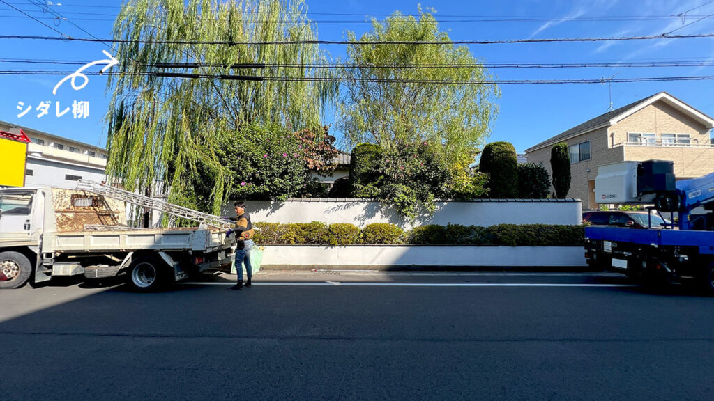 施主様はどこに頼んだらよいかわからず、お子様がネットで弊社を見つけて頂いたのをきっかけにご依頼頂きました。施主様もとても喜んで頂きました。柳は成長速度が速いので早めのメンテナンスが必要です。