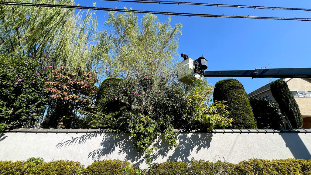 施主様はどこに頼んだらよいかわからず、お子様がネットで弊社を見つけて頂いたのをきっかけにご依頼頂きました。施主様もとても喜んで頂きました。柳は成長速度が速いので早めのメンテナンスが必要です。