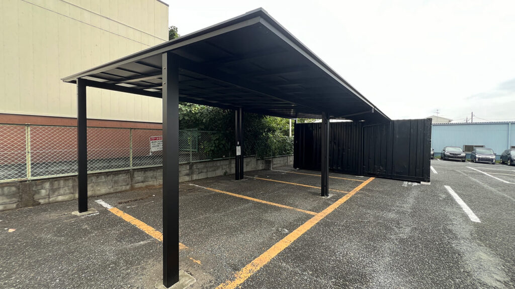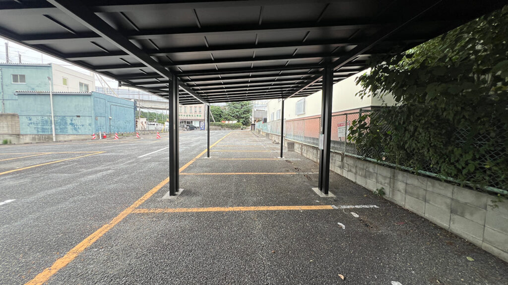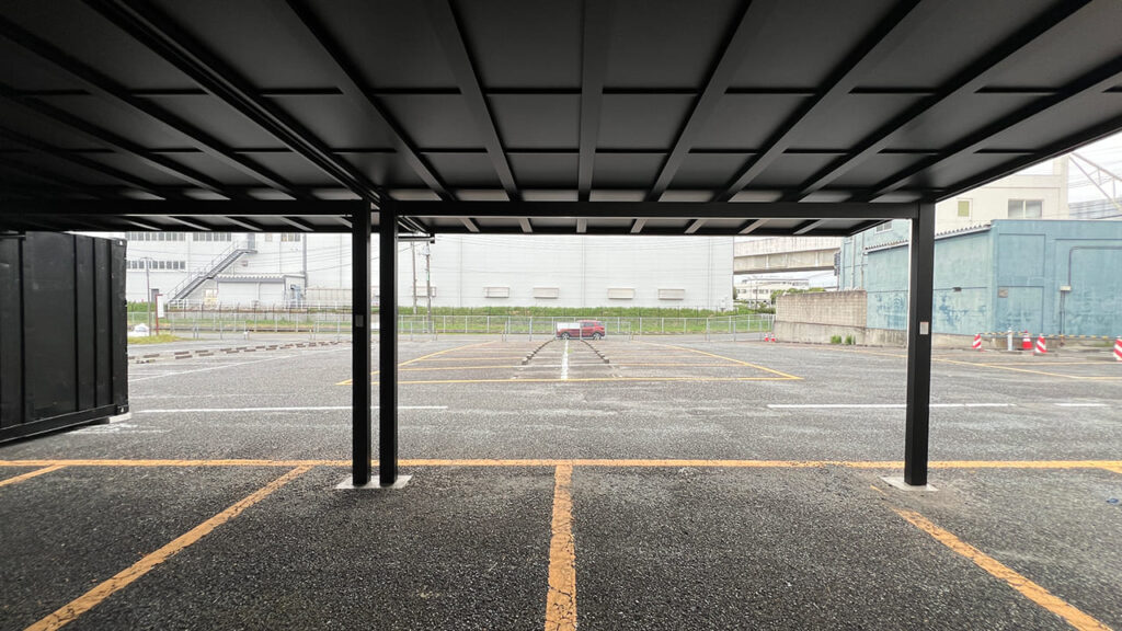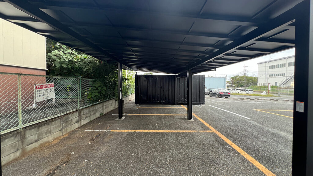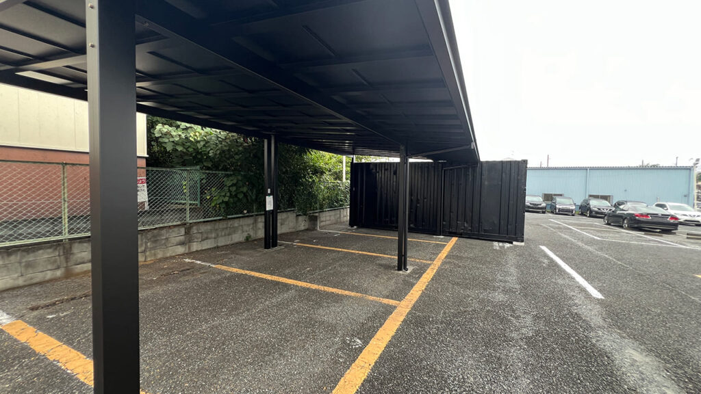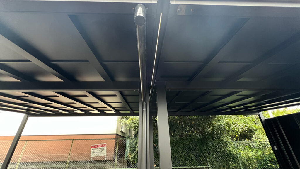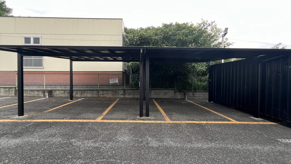 埼玉県伊奈町の外構工事です。既存のアスファルトにおしゃれなブラックポリカのカーポートの4台用(2台用×2)を施工致しました。2台用を連棟して4台分のカーポートになります。オールブラックのかっこいいカーポートになりました。