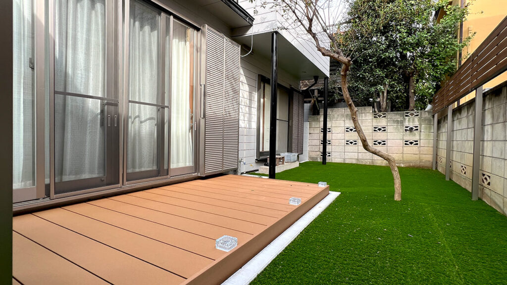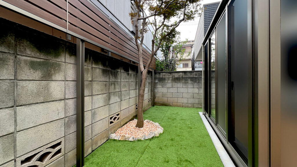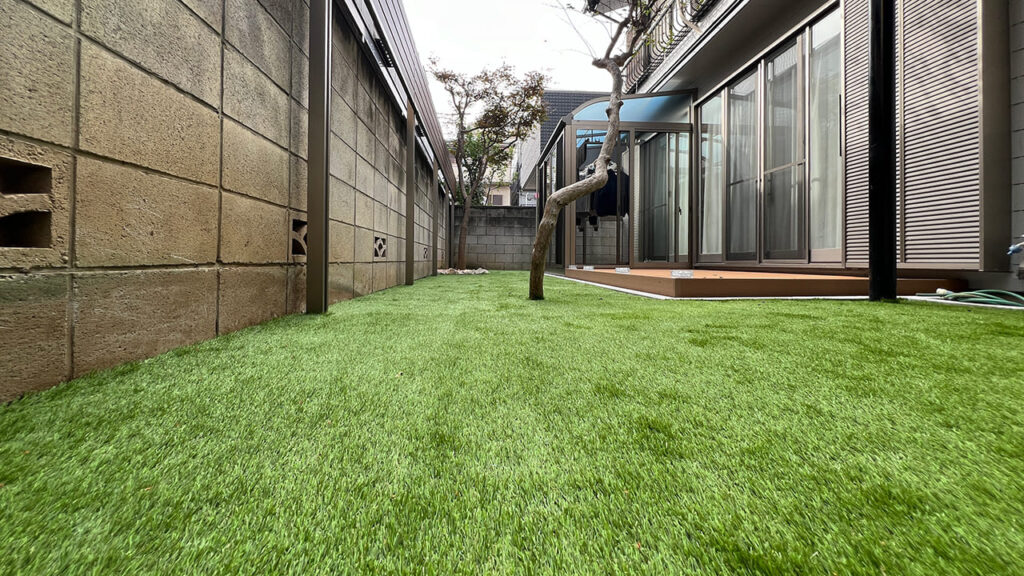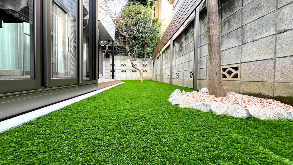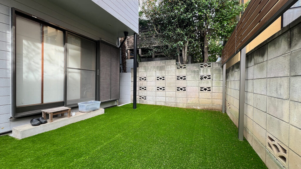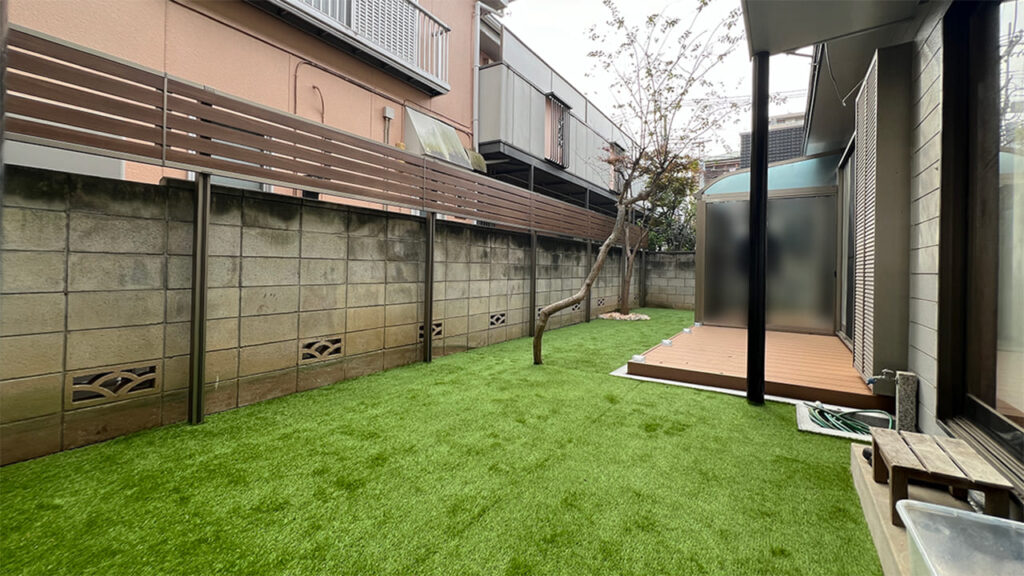 お庭は人工芝で雑草対策でメンテナンスを少なく