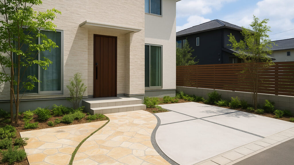 A.外構工事とは、建物の外まわり全体を整える工事のことです。具体的には、駐車場・アプローチ・門柱・フェンス・庭・ウッドデッキ・カーポート・照明などが含まれます。住まいの印象だけでなく、使いやすさ・防犯性・安全性にも大きく関わる重要な工事です。