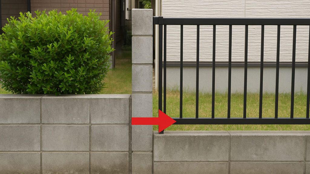 境界トラブルの典型例です。敷地の境界が不明確なまま塀やフェンスを設置すると、隣人トラブルに発展することがあります。