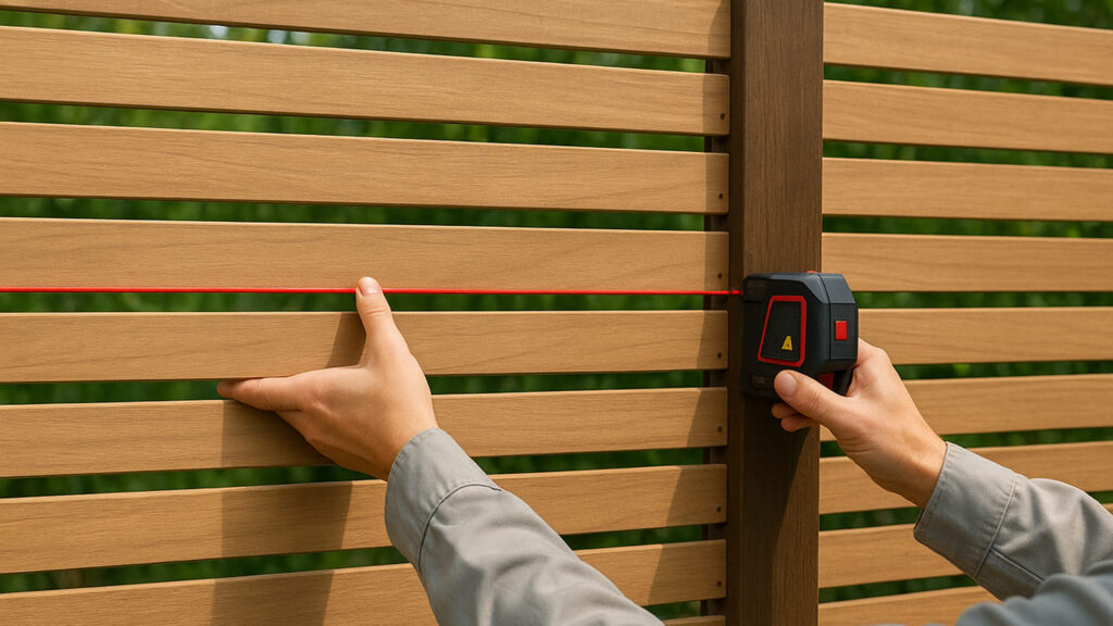フェンスの板やパネルの間隔が均等でないと、風圧の偏りが生じます。施工時には、専門業者がレーザーなどで水平・間隔を正確に測定して取り付けるのが理想です。