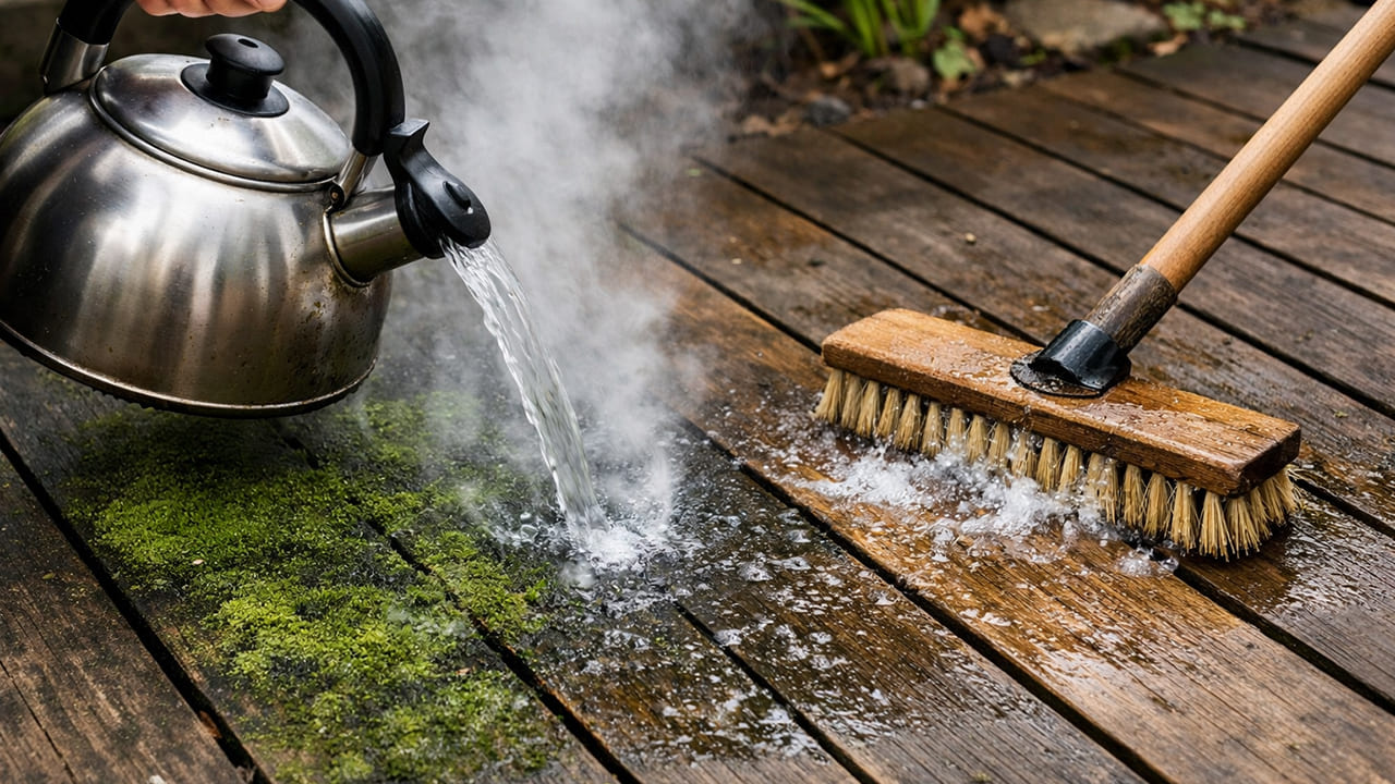 コケは熱湯に弱い