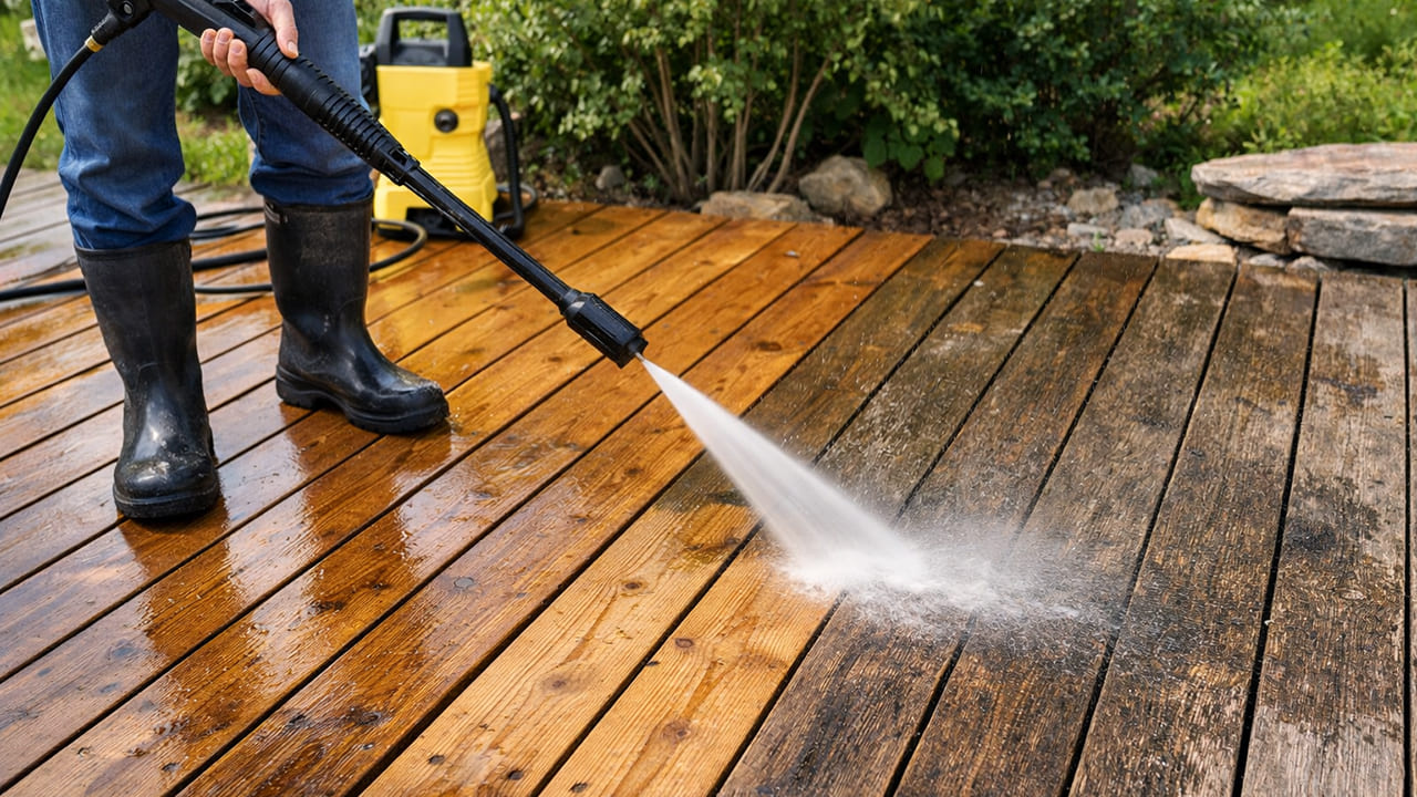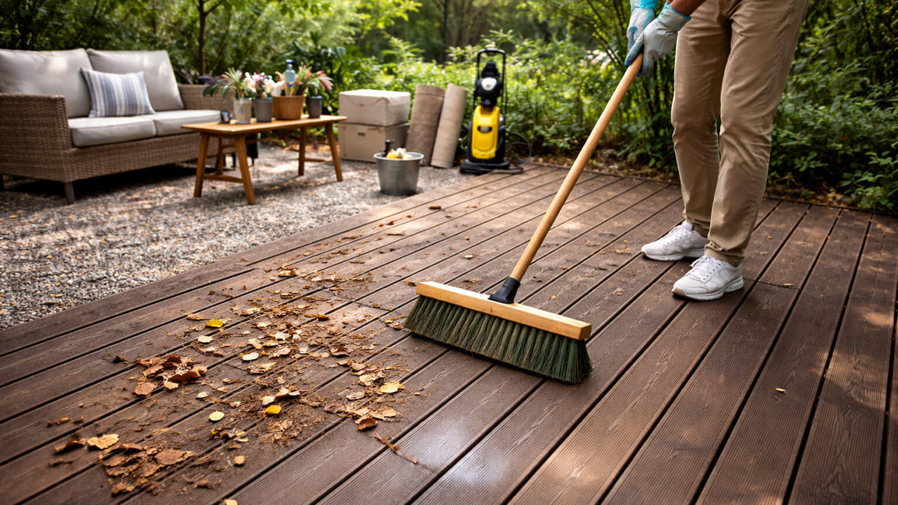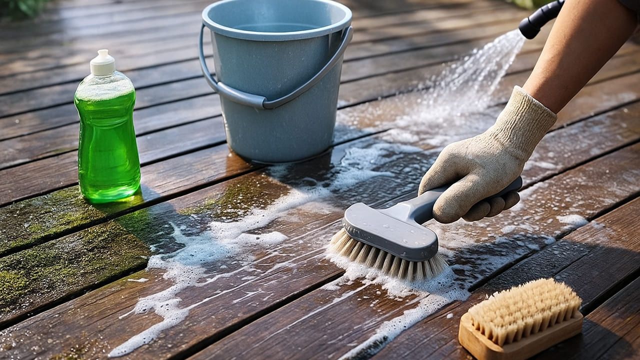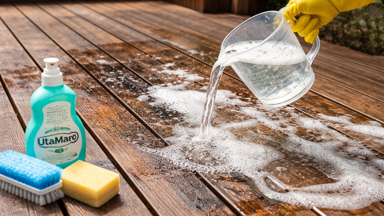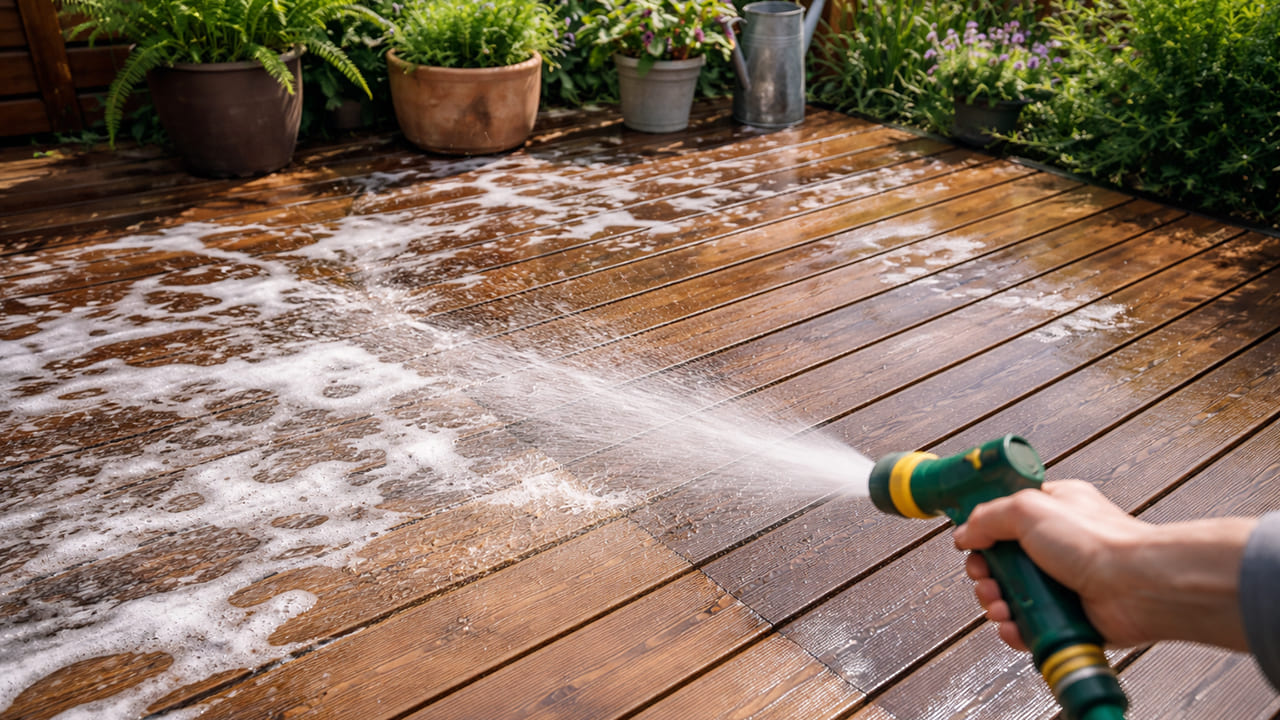ウッドデッキの黒ずみ・油汚れは水洗いで