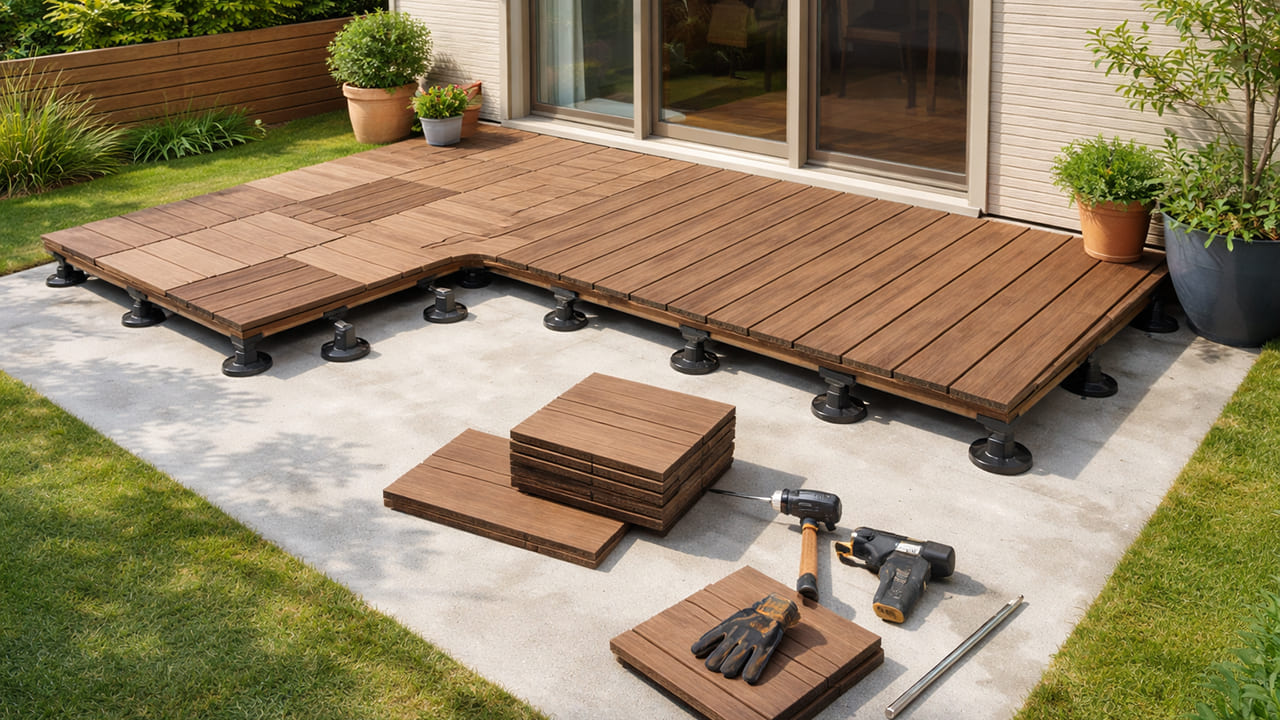 ウッドデッキの置くだけタイプはホームセンターでも購入でき、身近な商品として普及しています。ただし、設置場所の勾配や排水状態を考慮せずに置くと、ガタつきやズレの原因になります。下地の状態を確認し、必要に応じて高さ調整や固定を行うことが重要です。