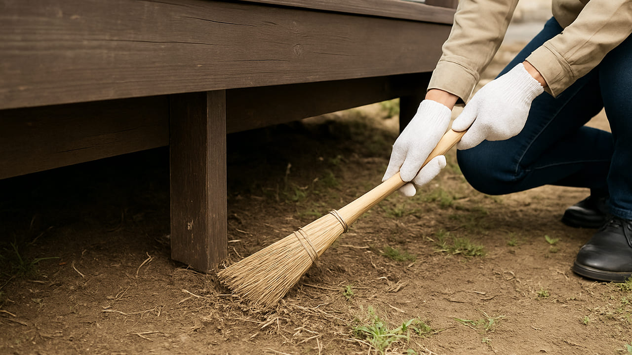 ウッドデッキ下の掃除